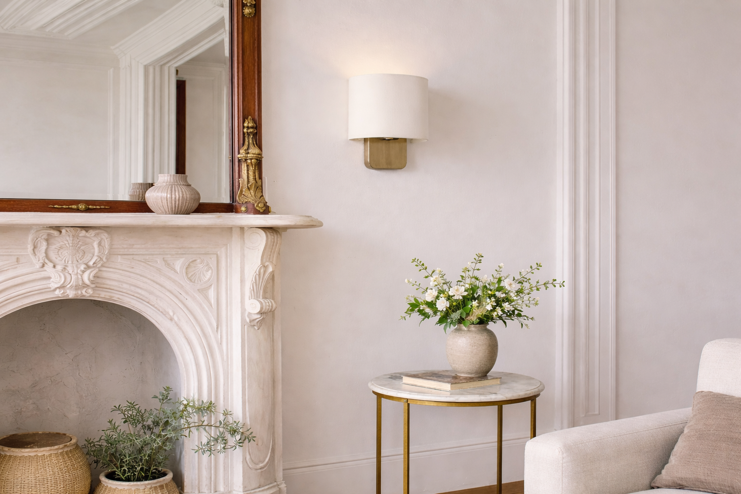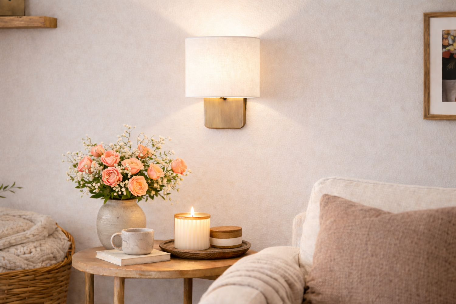 The minimalist silhouette lets the sconce's presence melt into the background, bringing subtle radiance to a home atmosphere.